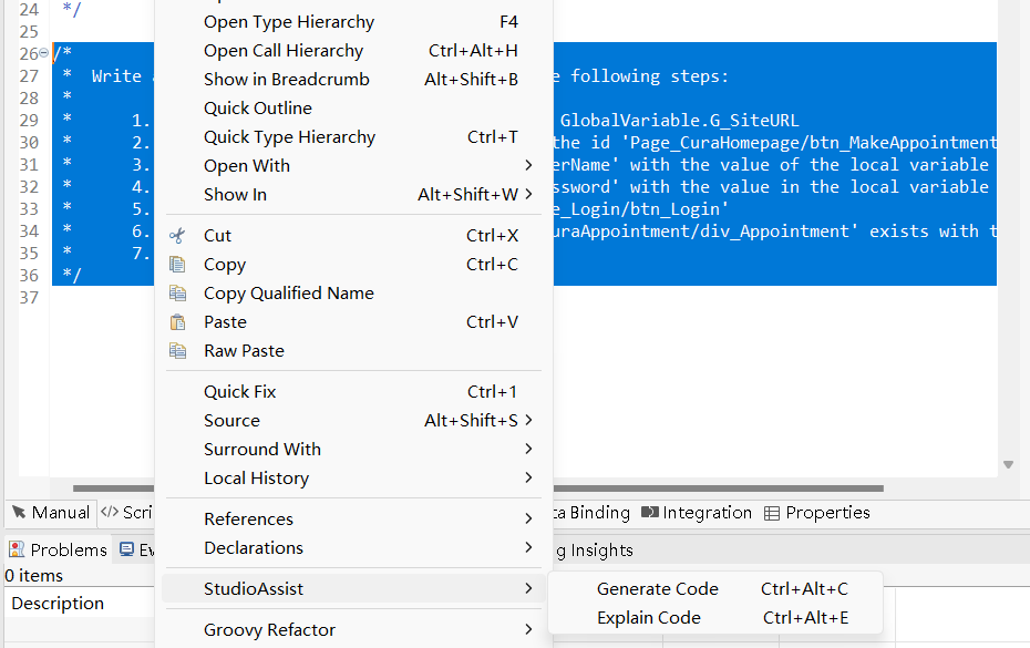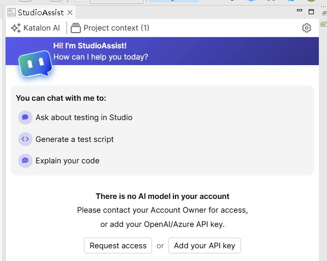 简单来说,StudioAssist 是一个内置于 Katalon Studio 环境中的 AI 助手。它的核心使命,是协助测试人员更轻松地创建和理解自动化测试脚本。