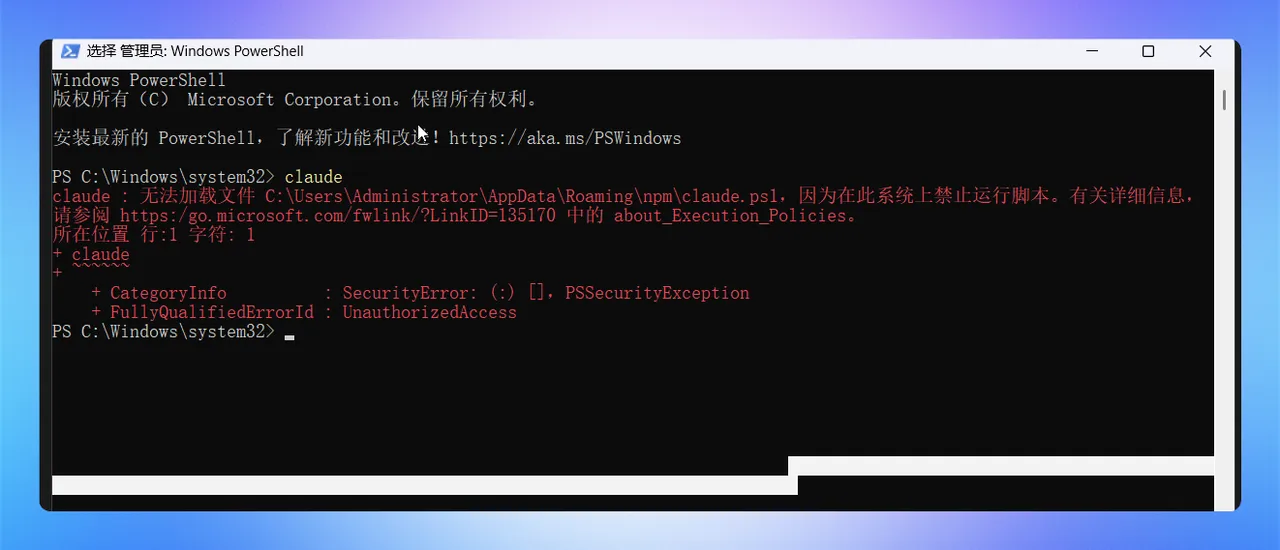 以管理员身份运行 PowerShell,执行:Set-ExecutionPolicy RemoteSigned(该策略允许运行本地签名脚本、远程可信签名脚本),按提示输入Y确认。