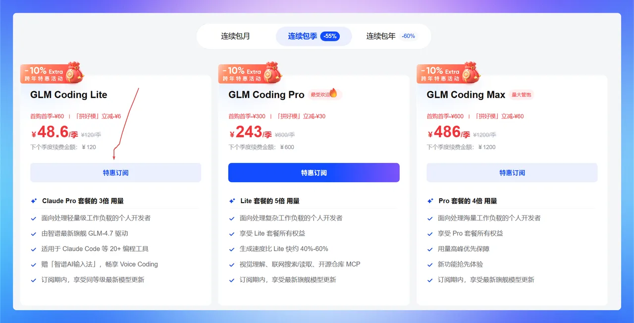 这里推荐智谱的API,我订阅的GLM Coding Lite,3个月只要48.6