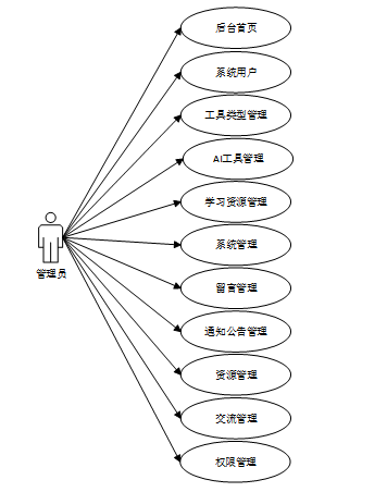 本系统旨在为普通用户提供一个集AI工具推荐、学习资源获取及互动交流为一体的综合平台,同时为管理员提供全面的后台管理系统。系统需要支持文本、图像、视频处理等多种AI工具的展示与应用,以及丰富的学习资源和社区互动功能。对于不同用户角色,系统需实现个性化的内容展示和服务,确保用户体验的便捷性和高效性。具体功能描述如下: