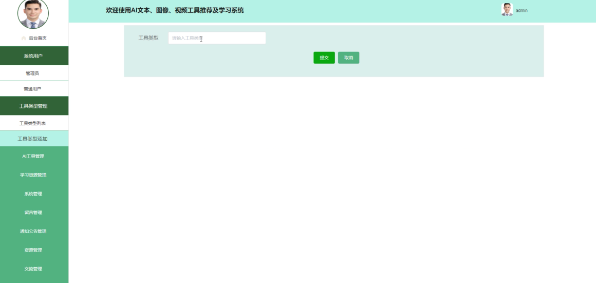 工具类型管理:负责定义和维护AI工具的分类标准,确保平台上展示的各类工具有序且易于查找。管理员可以创建新的工具类别或调整现有类别的属性设置,以适应不断变化的需求。
