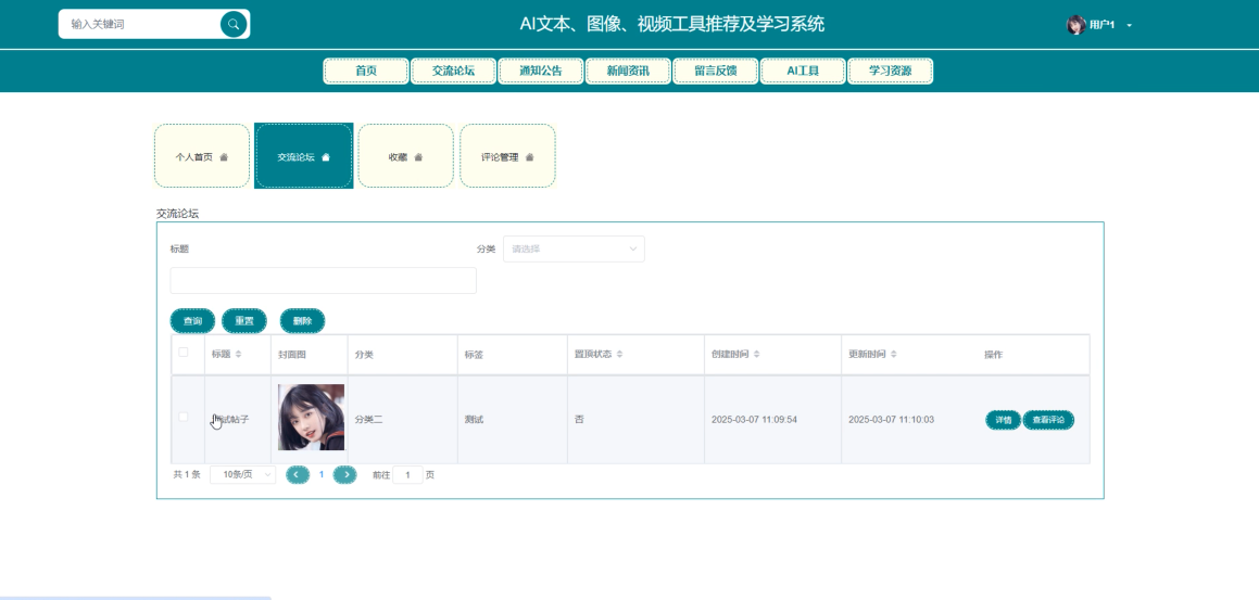 交流论坛:提供一个讨论和分享AI技术的平台,增强用户之间的互动。用户可以发布帖子、回复讨论,并对有价值的内容进行点赞和评论。