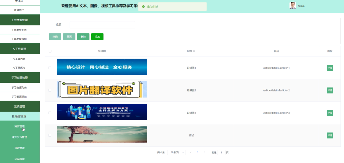 系统管理:设计和管理网站首页的轮播图,突出重点内容或活动,吸引用户注意。通过直观的界面,管理员可轻松上传图片、设置显示顺序,增强用户体验。