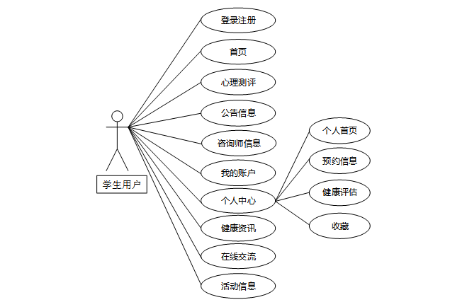 学生用户作为系统的核心服务对象,其功能需求主要集中在心理健康的自我管理与咨询交流上。具体功能需求如下: