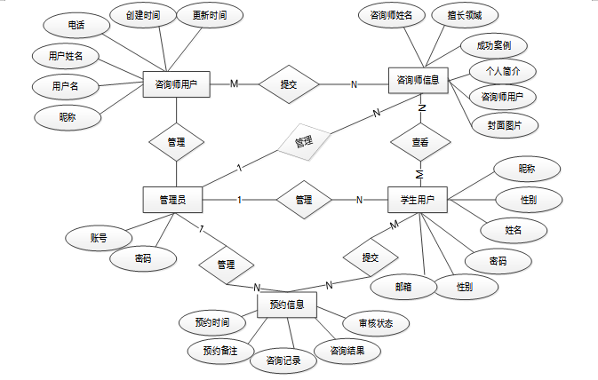 系统用户:管理学生用户和咨询师用户的信息,包括创建、编辑、删除用户等。