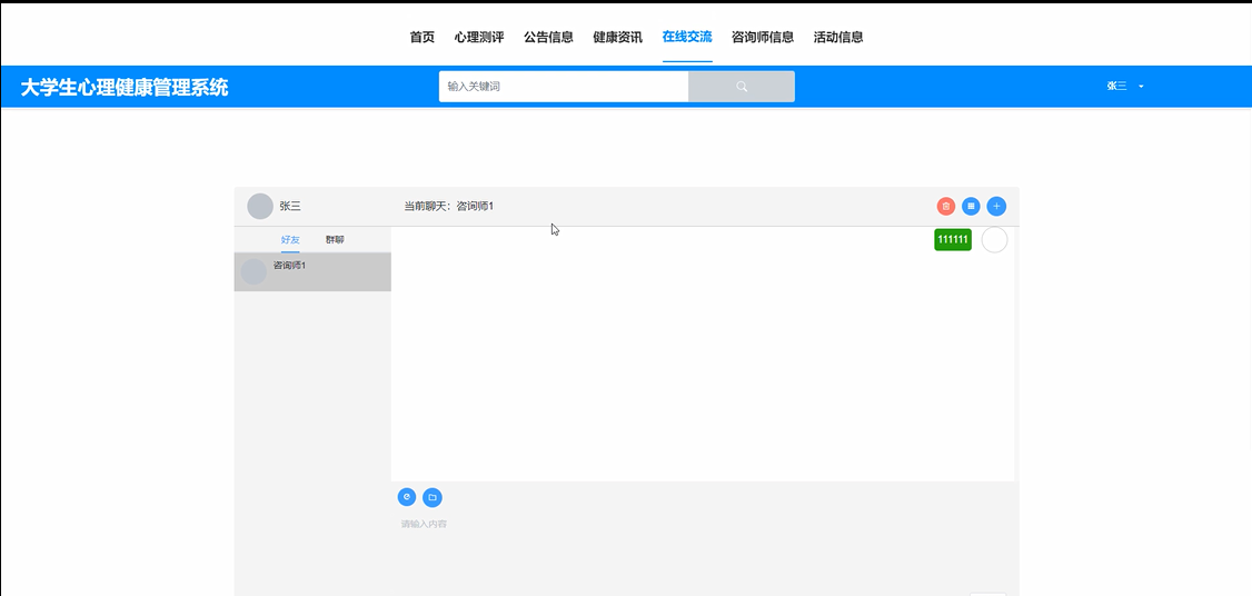 在线交流:学生用户应能够与咨询师进行在线交流,咨询心理健康问题,获取专业建议。