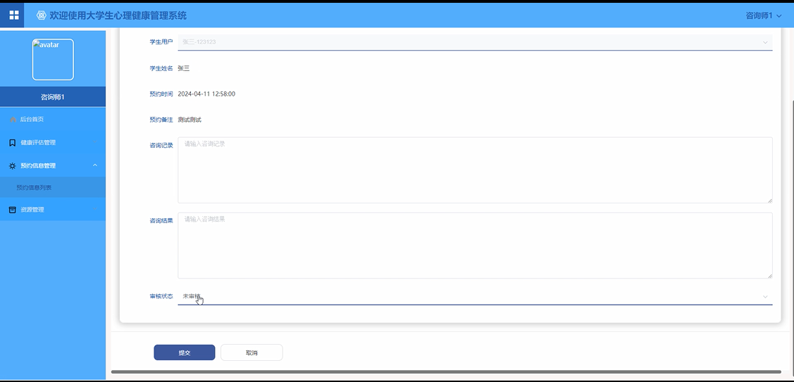 预约信息管理:咨询师应能够查看和管理学生的预约咨询信息,合理安排咨询时间。