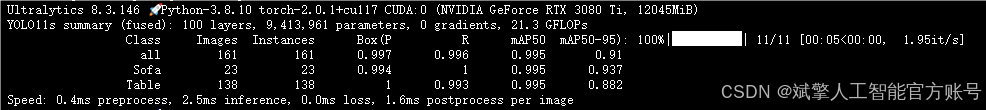 --batch 8:每批次8张图像。--epochs 100:训练100轮。--datasets/data.yaml:数据集配置文件。--weights yolov11s.pt:初始化模型权重,yolov11s.pt是预训练的轻量级YOLO模型。