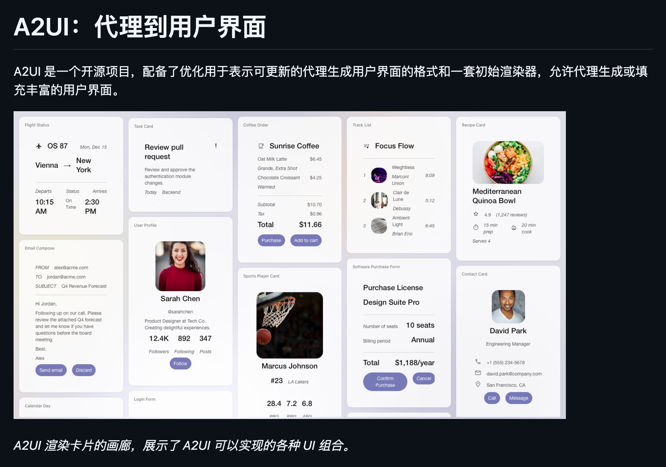 意义:它是未来“AI 手机”的雏形。有了 A2UI,RPA(自动化流程)将不再需要写死脚本,而是基于视觉的智能操作。