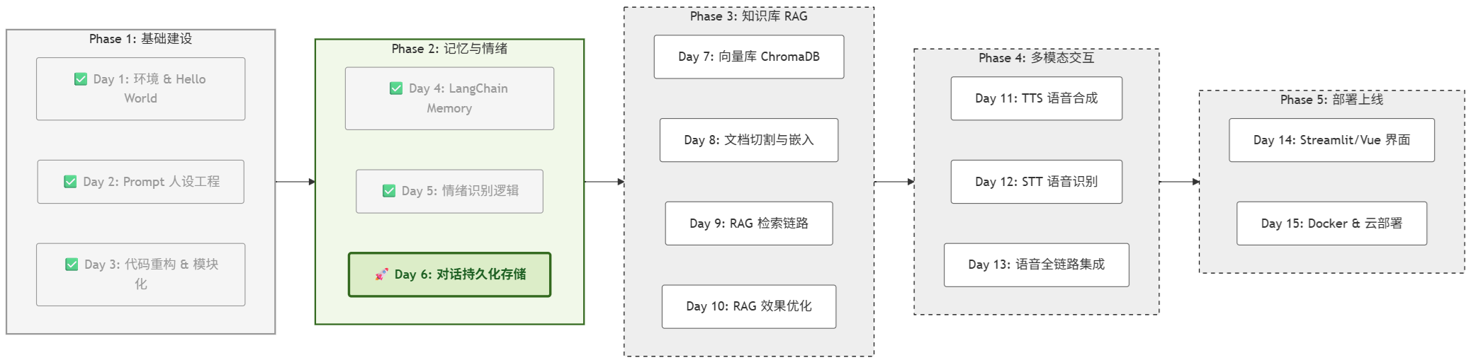 今天我们完成了 Phase 2 (记忆与情绪) 的最后一块拼图——持久化。