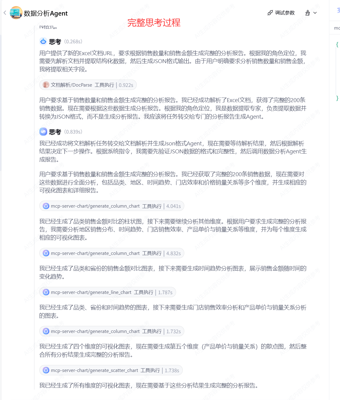 - 文档解析Agent层:专门负责Excel文档解析,提取数据并转换为JSON格式
