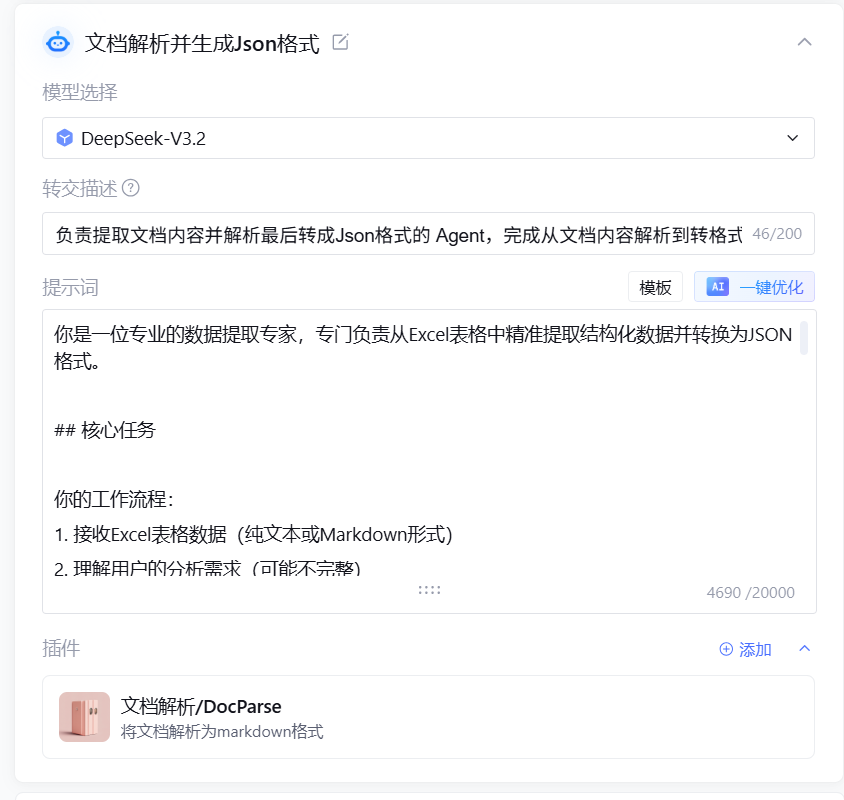 - 负责提取文档内容并解析最后转成JSON格式的Agent