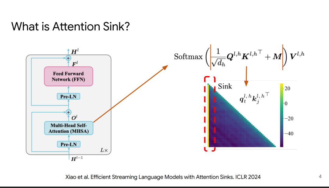 在针对流式推理(Streaming LLM)的研究中发现了一个有趣的现象:Attention Sink。