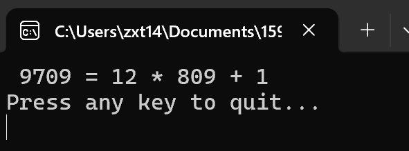 分别在Dev-C++与VS Code两个开发环境中运行修复后的代码,控制台均成功输出满足条件的数值组合: 9709 = 12 * 809 + 1 ,与程序预设的数位乘加验证逻辑完全吻合,标志着程序核心功能已正常实现。
