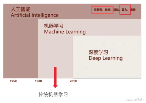 深度学习(DL)是机器学习的一个子领域,使用深层神经网络模型,其在2010年前后,借助大数据、强算力(如GPU)和先进算法实现爆发,取得了突破性进展。