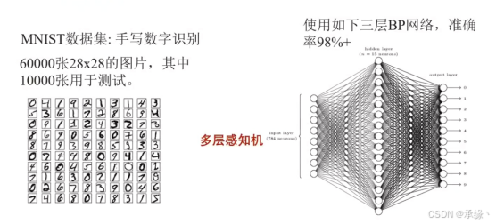 能力验证:使用一个仅含一个隐藏层(15个神经元)的三层MLP,在MNIST手写数字识别任务上达到了98%的准确率,证明了即使简单深度模型的有效性。