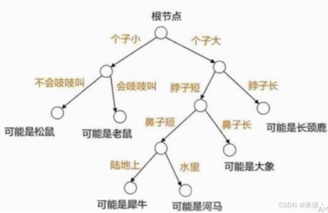 决策树:通过一系列基于特征的“if-else”规则对数据进行划分,最终到达的叶子节点即为预测类别。模型具有可解释性。