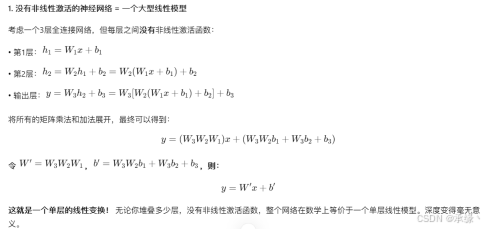 没有非线性激活函数(f(x)=x)的深层网络,其表达能力等价于单层线性网络,因为每一层的输入都是上层输出的线性函数。