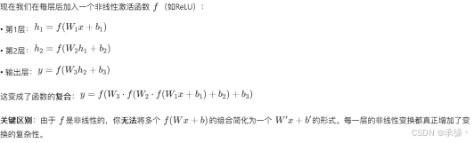 引入非线性后,网络才真正具备了拟合任意复杂函数的潜力,这是深度学习“深度”力量得以发挥的前提,例如: