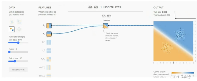 结构:一种最简单的神经网络,无隐藏层。其公式为 y=∑wixi+b,本质上是一个线性分类器。