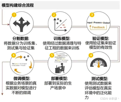 - 模型训练:使用训练集数据,通过算法学习模型参数。约占4%精力。