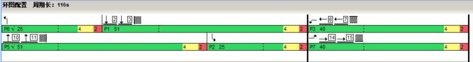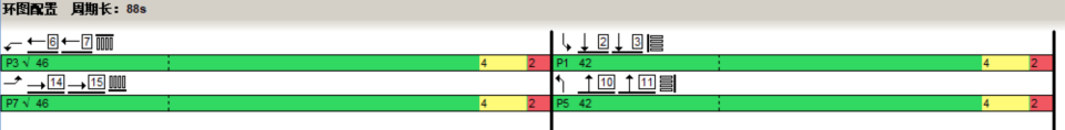 周期时长:某一进口道信号灯的各种灯色轮流显示一次所需的时间,即各种灯色显示时间之和。