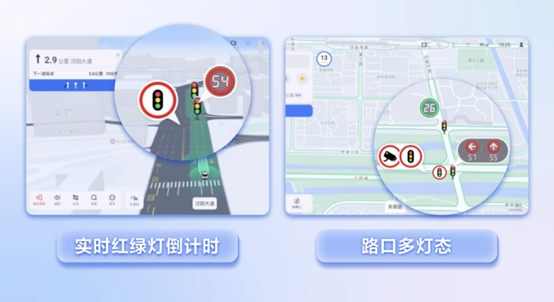 这些看似零散的“等待焦虑”,实则是城市交通的“暗伤”。近期我们在部分车企上上线了百度地图AI超视距感知红绿灯倒计时功能。该功能目前覆盖全国近3000区县超百万个红绿灯,车主使用百度地图导航,并经过信号灯路口时,可以看到红绿灯变灯剩余秒数,也会在倒计时结束前收到语音播报,提醒做好启停准备,从而避免急加速、急减速,还可缓解信号灯被前车遮挡时的焦虑。