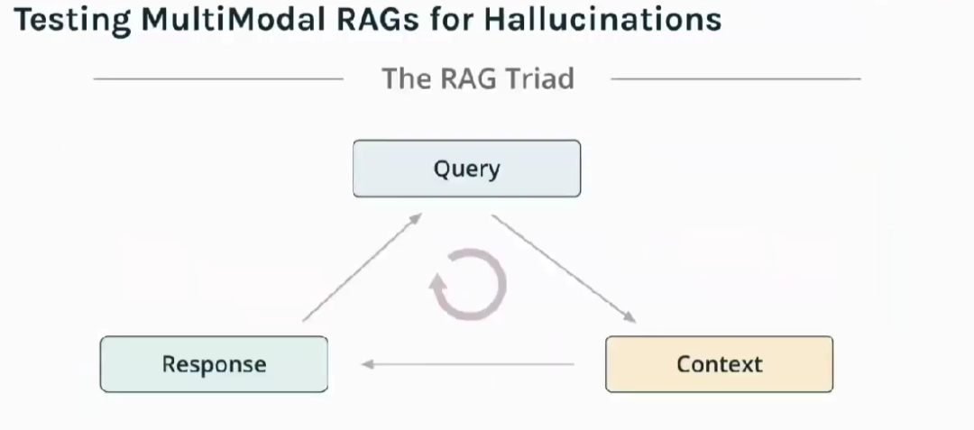 - Response(模型输出):LLM或多模态模型基于检索到的上下文和原始查询生成答案。这部分,评估生成的回答是否基于上下文,是否存在逻辑错误或编造内容。