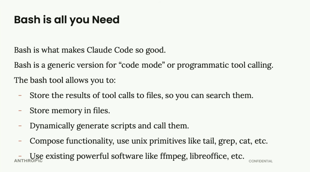 Anthropic 的答案是,与其给无数单一功能的接口,不如直接给一个可以制造任何工具的环境——Bash。
