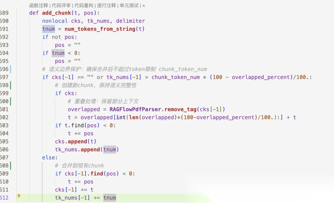 现在的RAG框架基本都是基于段落或句子来分块,也都都支持(\n。;!?)的递归分块。那从运营用户角度出发,或者第一次切的时候,如何傻瓜式操作呢?RAGFlow交出了一份方案,看一下它的分块核心算法