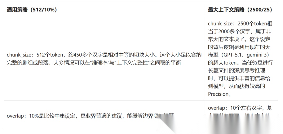 Chunk参数与指标,我设计了两套策略:512/10%和2500/25 (单位token)