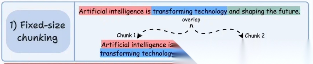 - 工作方式:例如,固定每块 500 tokens。引入 “重叠区”(Overlap)来缓解上下文断裂问题。