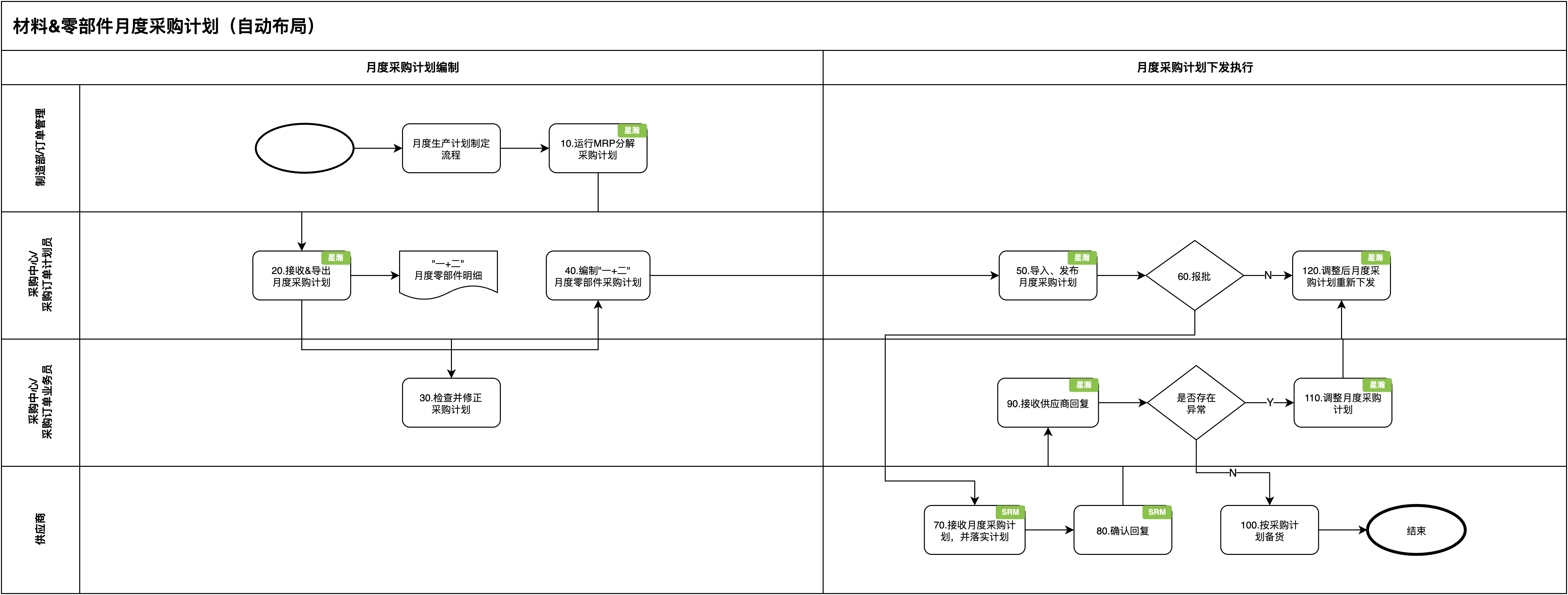 基于需求解析结果与BPMN知识匹配结果,AI开始构建二维泳道图的核心框架,核心分为泳道划分、节点布局、流转关系构建三个步骤,确保框架符合二维泳道图“纵向分角色、横向分步骤”的核心逻辑: