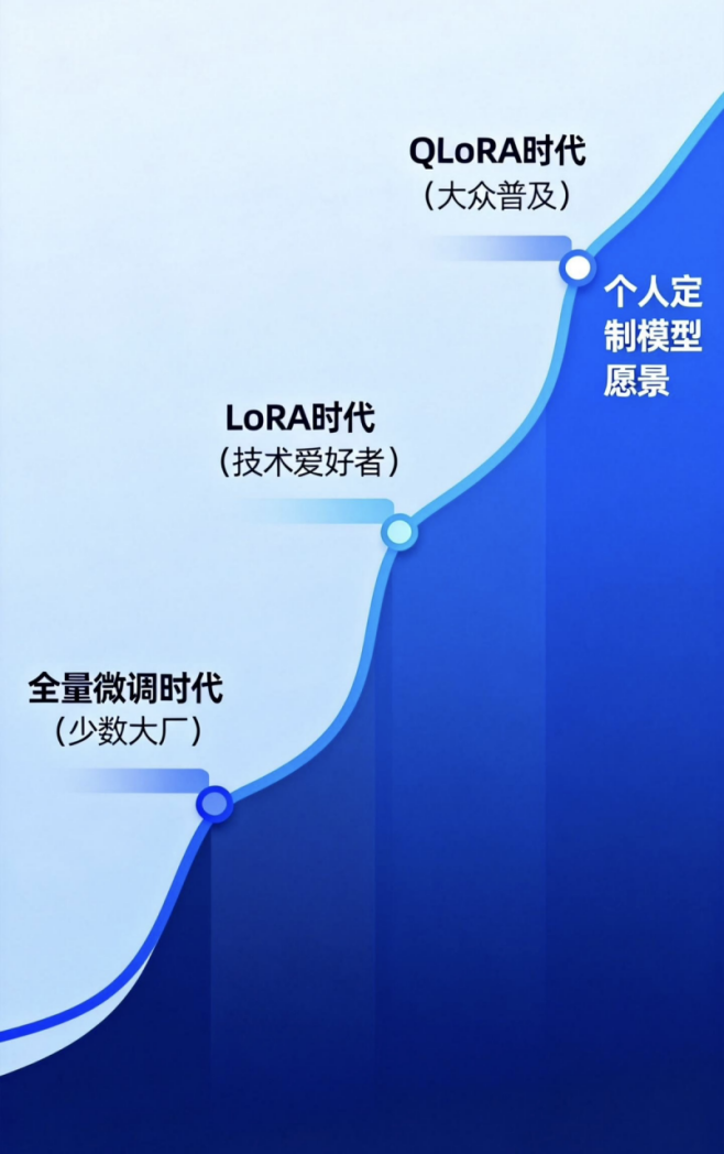 大模型微调技术的发展速度远超我们的想象。从Adapter到LoRA,再到QLoRA,技术的演进正在不断打破算力的垄断。这意味着,未来的AI格局将不是"一家独大",而是"百花齐放"。每一个细分行业、每一家公司,甚至每一个个人,都可以拥有懂自己业务、懂自己风格的专属大模型。