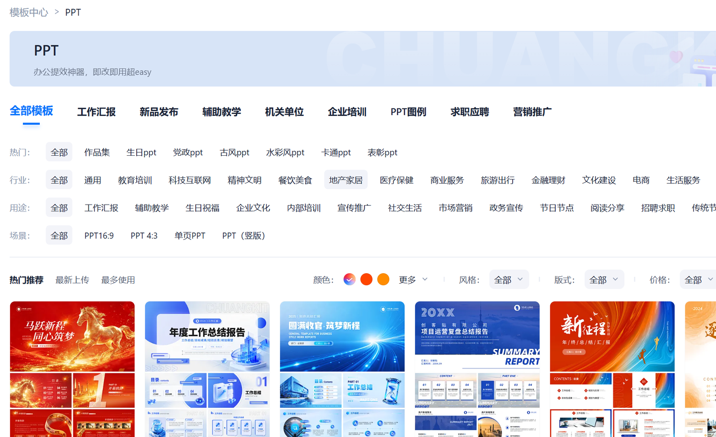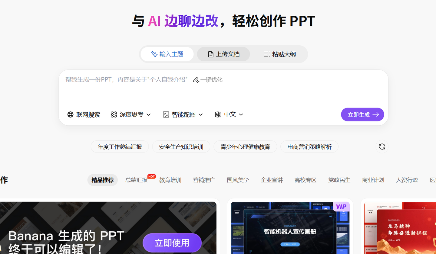 - 丰富模板资源:内置大量创意模板,涵盖汇报、演讲、分享等场景,支持自定义修改。