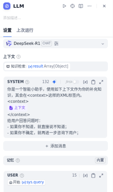 3、SYSTEM 提示词:告诉 LLM 要引用知识库,不知道的就说不知道。