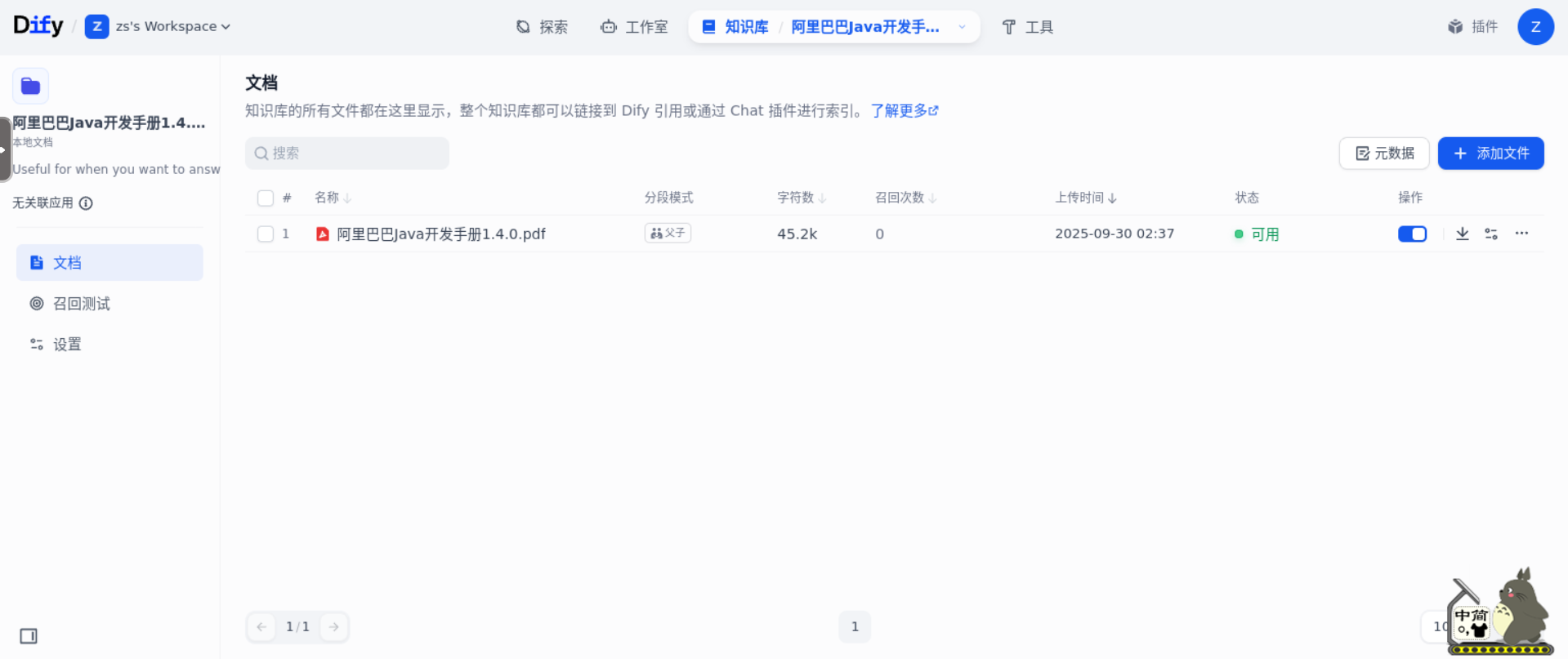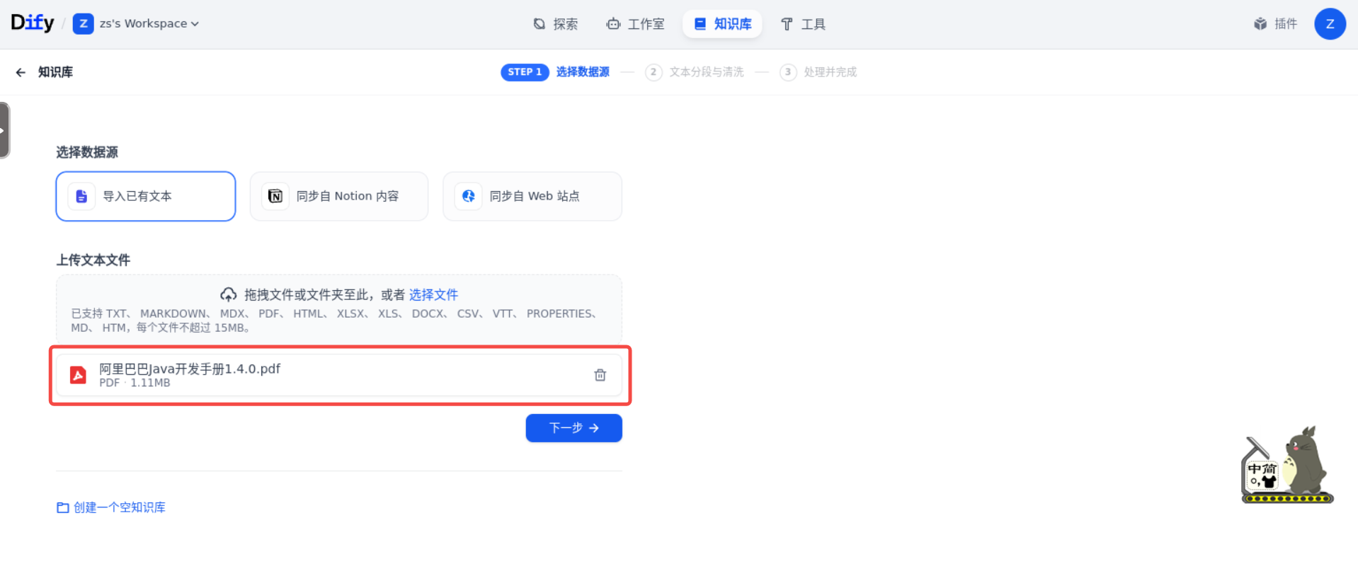 下面,我们创建一个新的知识库,并在后续的 Chatflow 中引用它。
