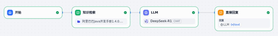 最后,在“LLM”节点后,配置“直接回复”节点,即直接将 LLM 的输出返回给用户。