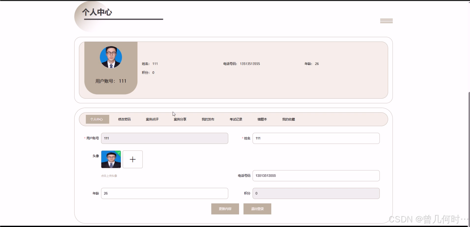 用户的个人中心