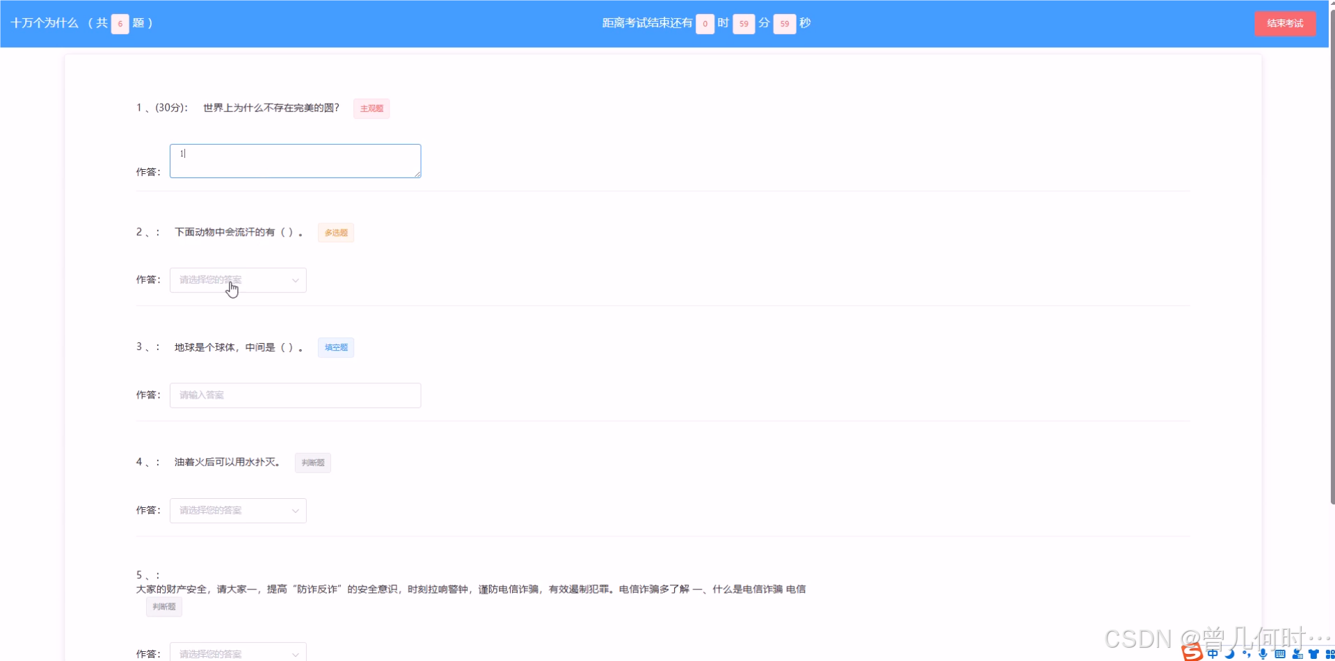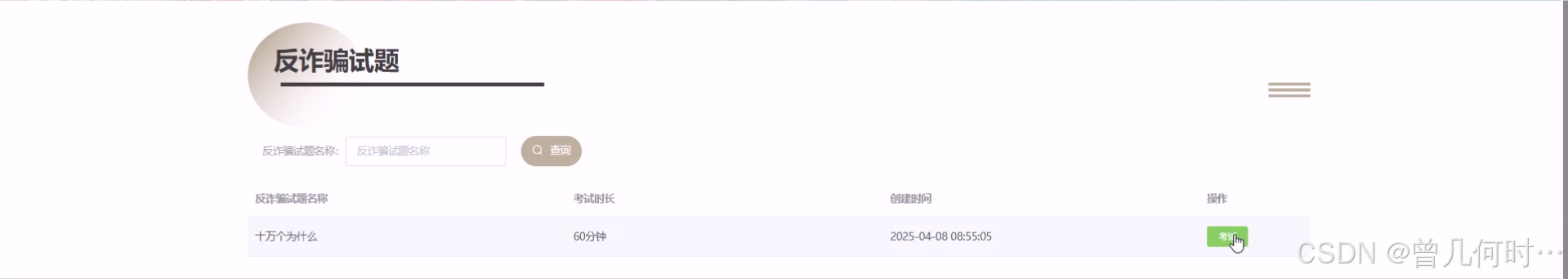 反诈骗试题,点击考试进入考试页面