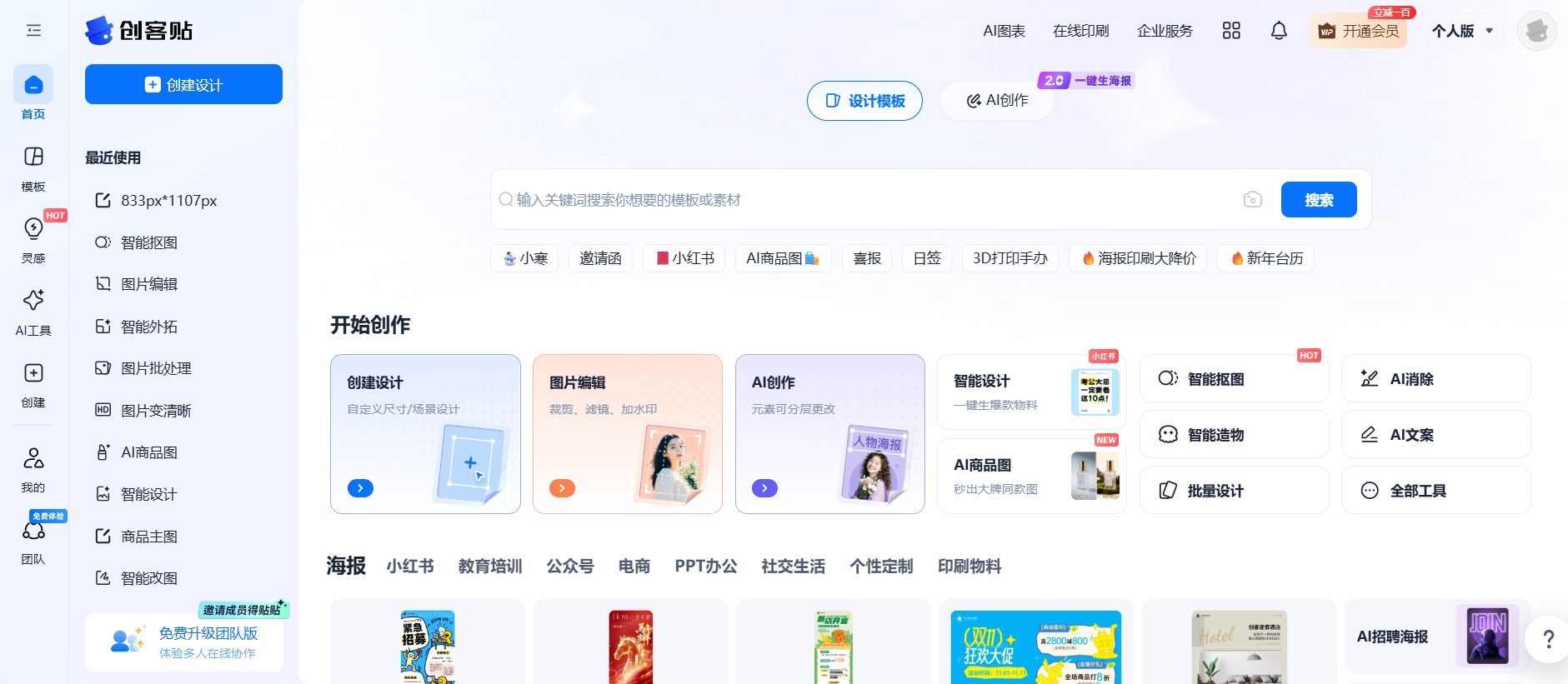 如果你常常要将抠好的图直接做成电商海报或社媒封面,创客贴则更符合从抠图到设计一站搞定的需求。