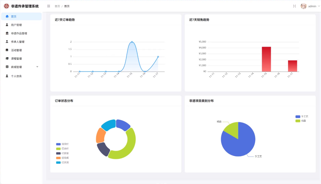 前端框架:后端管理界面采用Ant Design作为UI组件库。虽然它是一个前端框架,但在描述后端提供的管理界面渲染能力时,它代表了后端应用中管理后台部分所采用的前端技术选型(通常与Thymeleaf或独立前端项目结合),其企业级的设计语言和丰富的React组件,能够帮助快速构建出专业、一致的后台管理操作界面,方便管理员对非遗内容进行高效管理。
