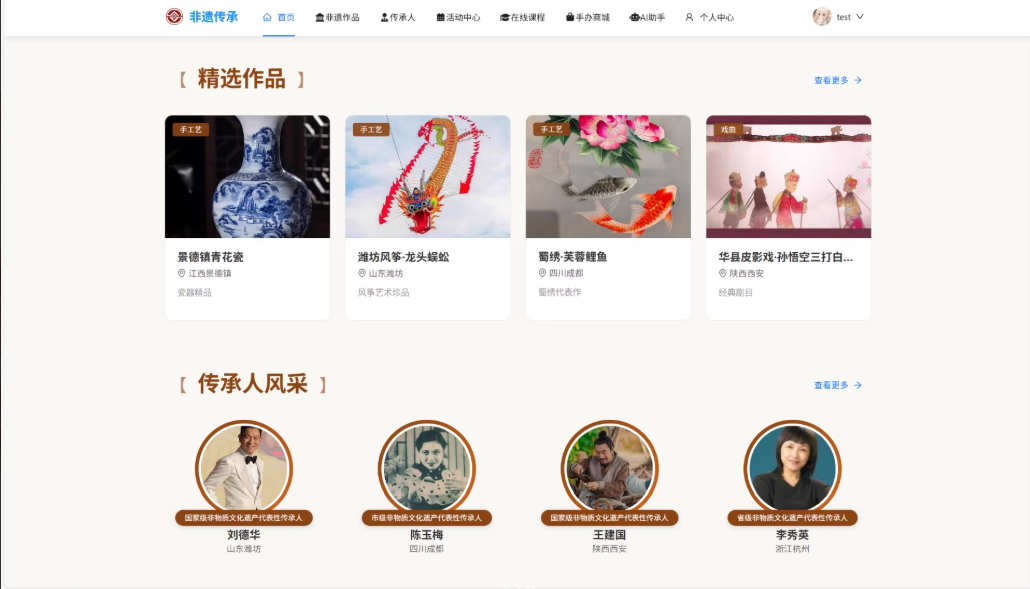 通过此系统,期望能够为非遗保护机构、传承人、研究者、文创开发者及广大公众搭建一个开放、互动、可持续的数字桥梁,助力破解非遗传承困境,激发文化创新活力。本毕业设计不仅具有重要的文化价值与社会意义,也为学生综合运用前沿技术解决复杂社会文化问题,完成一个兼具技术深度与人文关怀的全栈项目提供了宝贵的实践平台。