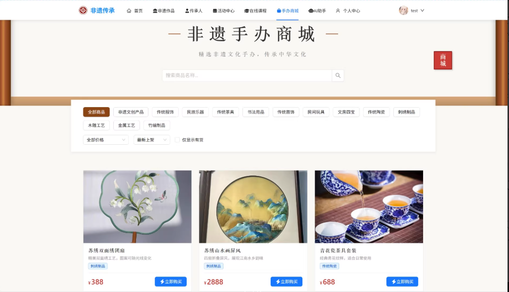 本文提出构建一个基于SpringBoot和Vue.js的非遗文化传承系统,旨在解决当前非遗保护面临的数字化整合不足、传播渠道有限等问题。系统采用前后端分离架构,后端使用SpringBoot集成JWT、SpringSecurity等技术实现安全认证与业务逻辑,前端采用Vue3构建交互式界面,结合MySQL8存储数据。主要功能包括非遗作品管理、课程活动发布、商品交易、AI智能助手等模块,实现非遗资源的