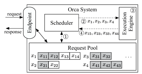 批处理中的请求长度可能不同,当较短的请求完成而较长的请求仍在运行时,会导致利用率低下。 由于服务场景中请求的异步性质,存在机会可以缓解这种利用率低下的时期。 提出了连续批处理技术,通过在一些旧请求完成时批处理新请求来利用这一机会。