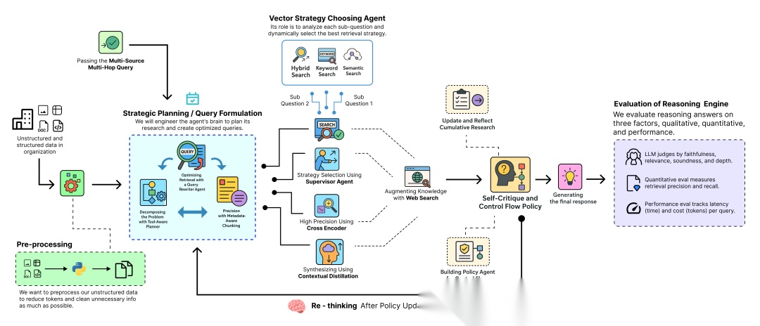 在本博客中,我们将实现整个深度思考 RAG 流水线,并将其与一个基础的 RAG 流水线进行比较,以展示它如何解决复杂的多跳查询(multi-hop queries)。
