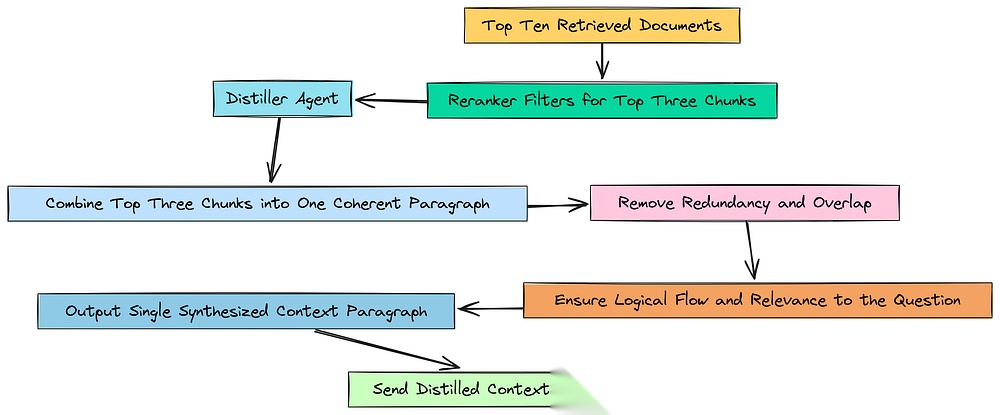 - • 我们构建了一个多阶段检索漏斗,它从广泛召回(使用混合搜索)到高精度(使用交叉编码器重排序器),最终到综合(使用蒸馏智能体)。