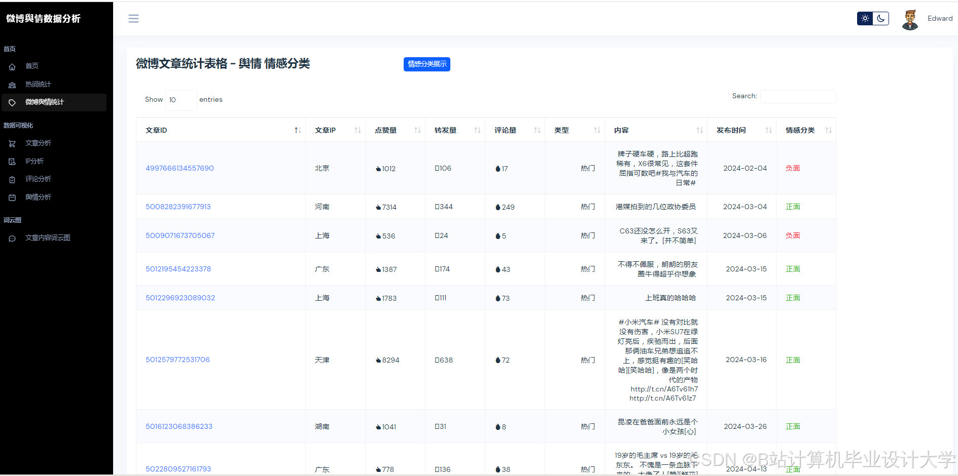 计算机毕业设计Python+百度千问大模型微博舆情分析预测 微博情感分析可视化 大数据毕业设计(源码+LW文档+PPT+讲解)