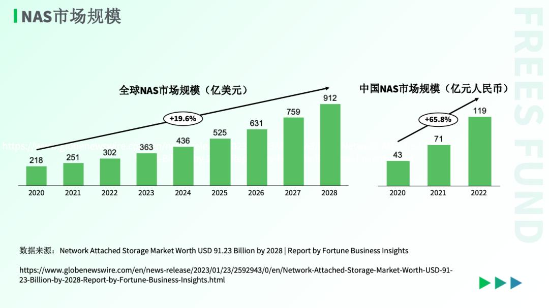 近年来,NAS品类在全球呈增长趋势。依据Fortune Business Insights的报告,2023年,全球NAS市场规模约363亿美元, 2021-2028期间年复合增长率约为19.6% 。