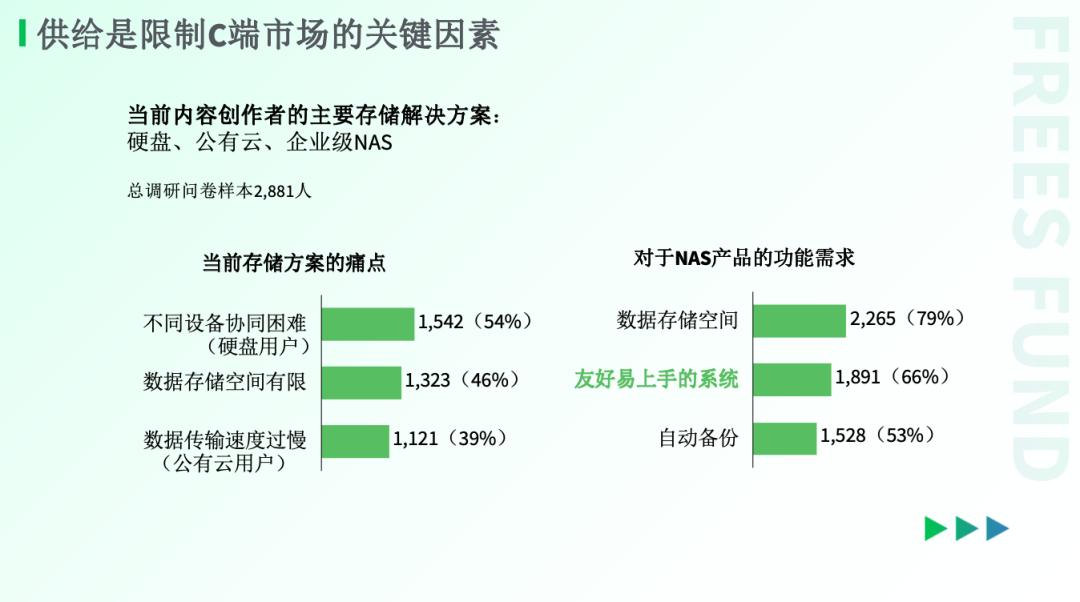 而企业级NAS由于其繁琐的配置流程 ,用户仅限于少数有搭建能力的极客创作者。换句话说,它拦住了大规模扩张的C端用户和中小型工作室 。这个痛点带来了消费级NAS产品的机会。